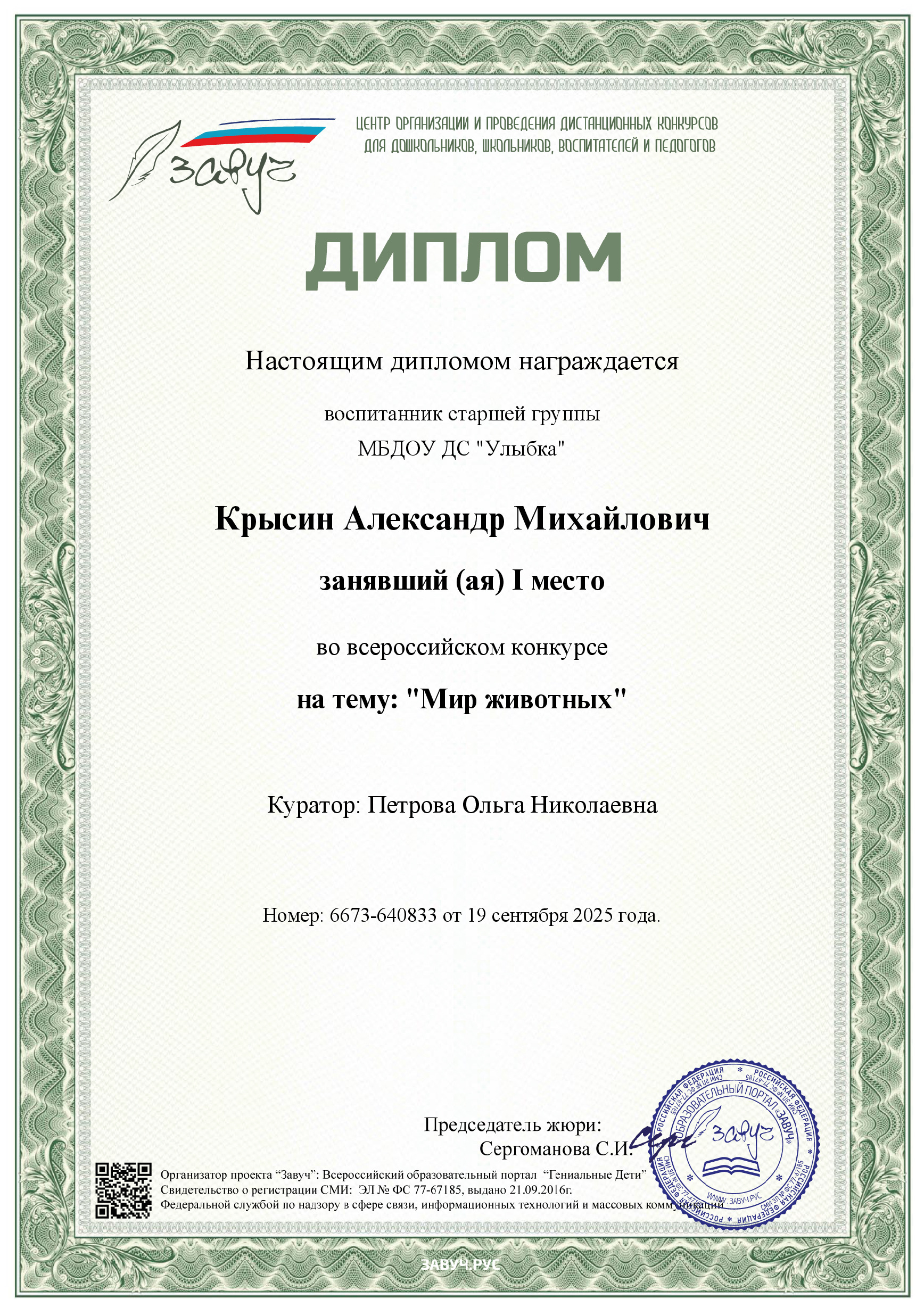 Мои сертификаты, свидетельства, дипломы