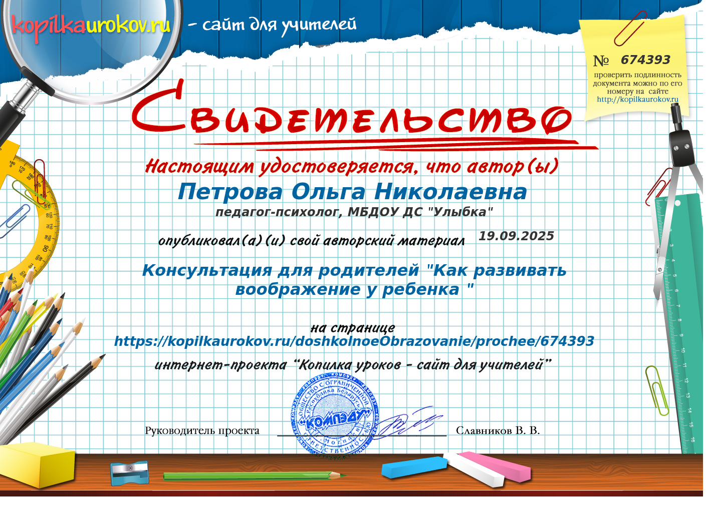 Консультация для родителей «Как развивать воображение у ребенка»: статья . . - 2025.